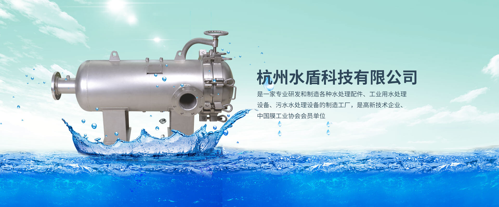 杭州水盾科技有限公司是一家專業研發和制造各種水處理配件、工業用水處理設備、污水水處理設備的制造工廠,是中國膜工業協會會員單位。公司水處理配件的主要產品有不銹鋼膜殼、精密過濾器、袋式過濾器、機械過濾器、離子交換器、無菌水箱、軟化罐、發酵罐以及配套的濾芯、袋濾等;廣泛應用于電子、電力、石油、化工、涂裝、印染、醫藥、食品、飲料等行業。